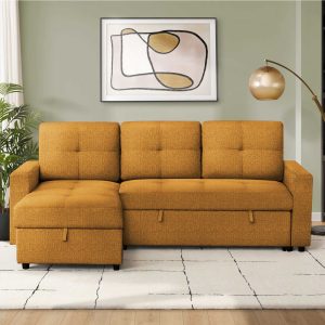 Lumos Sofa Bed Pull Out Reversible Sleeper Sofa Sectional With Storage In Orange