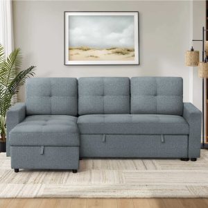 Lumos Sofa Bed Pull Out Reversible Sleeper Sofa Sectional With Storage In Blue