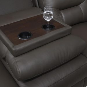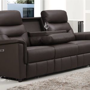 Maxwell Brown Leather Power Recliner Living Room Sofa W/ Drop Down Table