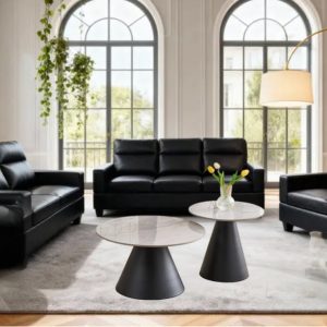 Tufted Spruce 3 Piece Living Room Set In Black and White