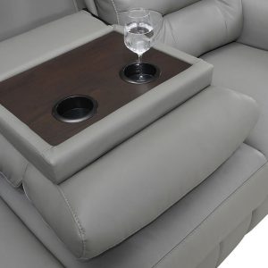 Maxwell Light Grey Leather Power Recliner Living Room Sofa