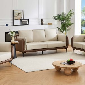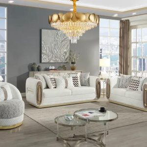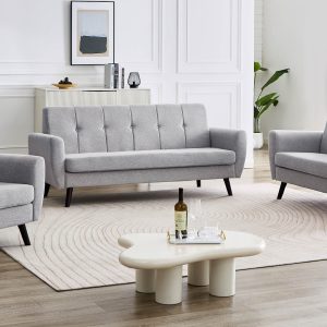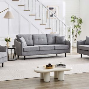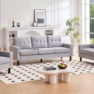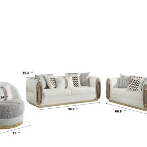 Luxury Taupe Velvet 3-Piece Sofa Set with Gold Trim Accents in Beige-Taupe