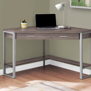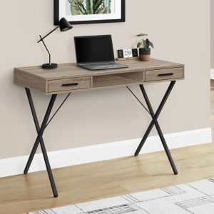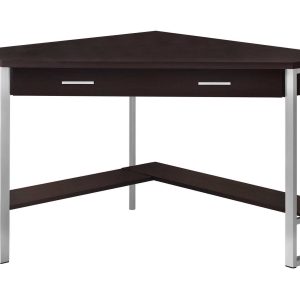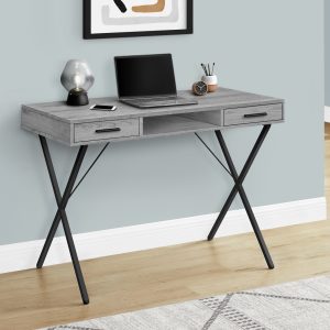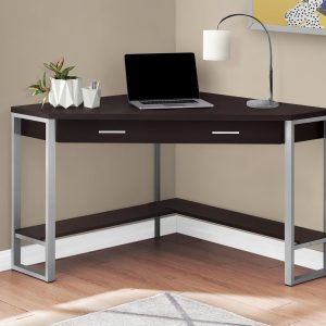 Features a spacious 42”L desktop and a convenient closed storage drawer with a sleek silver handle