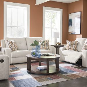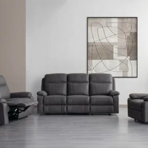 The Cody Modern Recliner Living room Set in Fresh Air Leather! Features plush comofort seating, drop down center sofa table with built in cup holders. Durable and Supple Air ...
