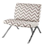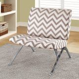 For those in need of an on trend, fashion statement accent chair, this one’s for you. Upholstered in a tan and white chevron pattern, it is both comfortable and practical. It features shiny metal legs for sufficient support with the perfect splash of elegance to your living space. Keep in mind that an armless accent chair allows for easy movement – Perfect for guests and it is also a space saver. Lounging at its best, folks!