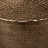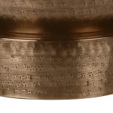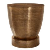 Add some dazzle and fashionable style to a room with this unique 22″ high, drum shaped accent table on a round metal base. The copper metal finish with a hammered pattern on all sides captures a boho-chic feel in a classic style. Hand-crafted from iron metal with a space saving design, this table is both practical and multifunctional as a side table next to a chair in a living room, or place it beside a sofa as an elegant end table with a small lamp on top; bring it into the bedroom and use it as a nightstand for stand-out style. Suitable for all decor styles, including contemporary and modern spaces, this durably designed metal table only requires minor assembly. This table is also backed with a 5 year limited warranty against manufacturer’s defects ensuring that you have a quality piece of furniture in your home. For indoor use only.