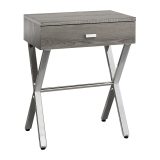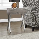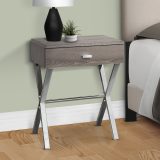 For a brilliant home upgrade, this dark taupe wood-look side table does the trick (and more!). Supported by an elegant chrome metal base, the end table is made for anything from snacks and drinks to your laptop, tablet and even decorative accents that complement the rest of your decor. Bringing a modern touch to your small house, condo or apartment, this table slides nicely next to a couch, armchair, or bed. This versatile accent table includes a convenient storage drawer to tuck away small devices or reading glasses. Assembly is required.