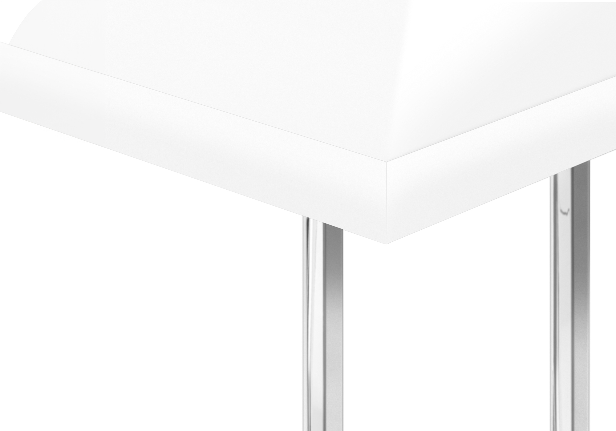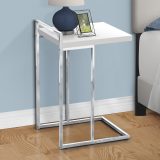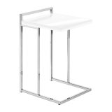 This C-shaped accent table brings something extra to the table. The thick-panel tabletop in a glossy white finish offers a wider surface than most standard-size C tables. More surface space gives you more opportunities to use this end table. It can multitask in a living room or bedroom as a snack table when you watch TV, a nightstand to place a mobile phone while you sleep, or even a small laptop table when you need to work. The chrome metal base slides under a sofa or bed to bring items closer to you and offers another convenient feature: The top of the frame extends over the tabletop to create a handle that makes it easier to lift and move this portable side table.