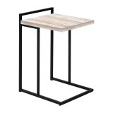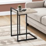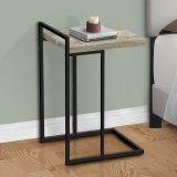 This C-shaped accent table brings something extra to the table. The thick-panel tabletop in a taupe reclaimed wood-look finish offers a wider surface than most standard-size C tables. More surface space gives you more opportunities to use this end table. It can multitask in a living room or bedroom as a snack table when you watch TV, a nightstand to place a mobile phone while you sleep, or even a small laptop table when you need to work. The black metal base slides under a sofa or bed to bring items closer to you and offers another convenient feature: The top of the frame extends over the tabletop to create a handle that makes it easier to lift and move this portable side table.
