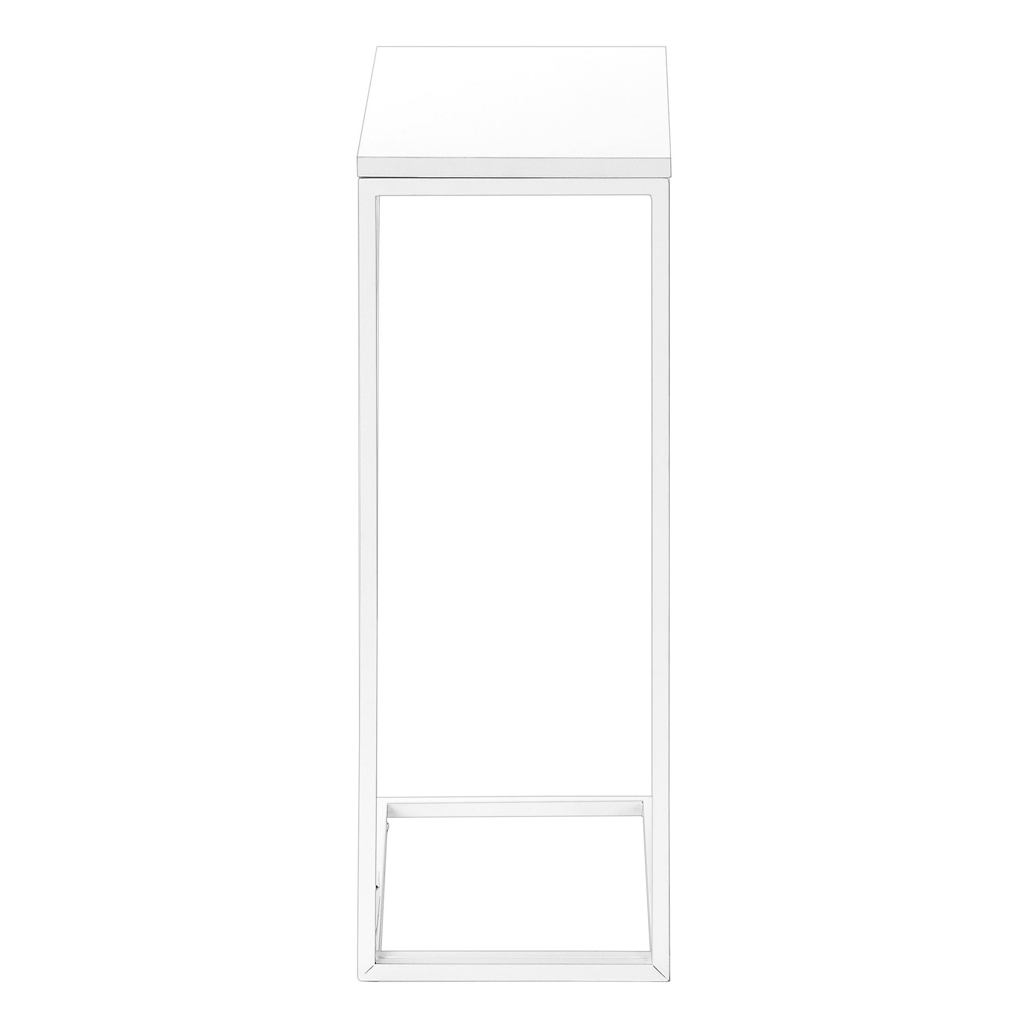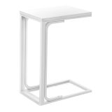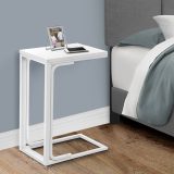 For a brilliant home upgrade, this white laminate C shape side table does the trick. Supported by an elegant white metal base, the end table is made for anything from snacks and drinks to your laptop, tablet and even decorative accents that complement the rest of your decor. Bringing a modern touch to your small home, condo or apartment, this C table slides nicely under the couch or bed. Study session? Favorite movie? Quiet reading time? This side table handles all of the above.