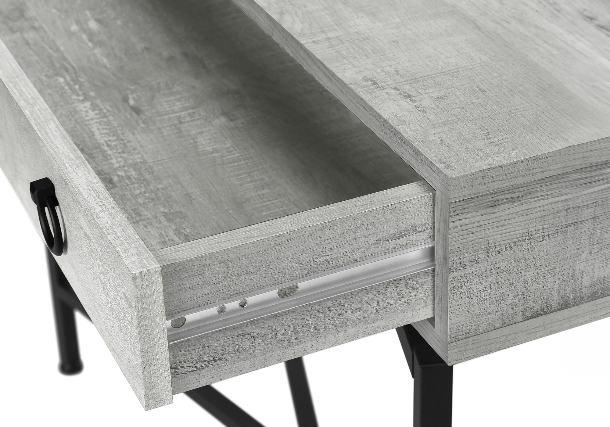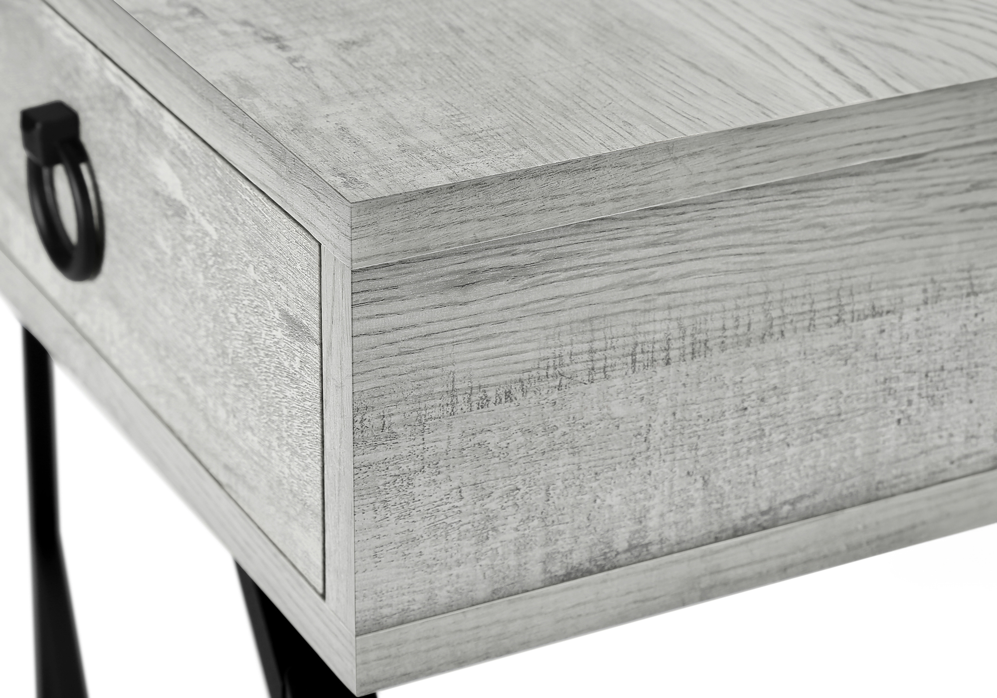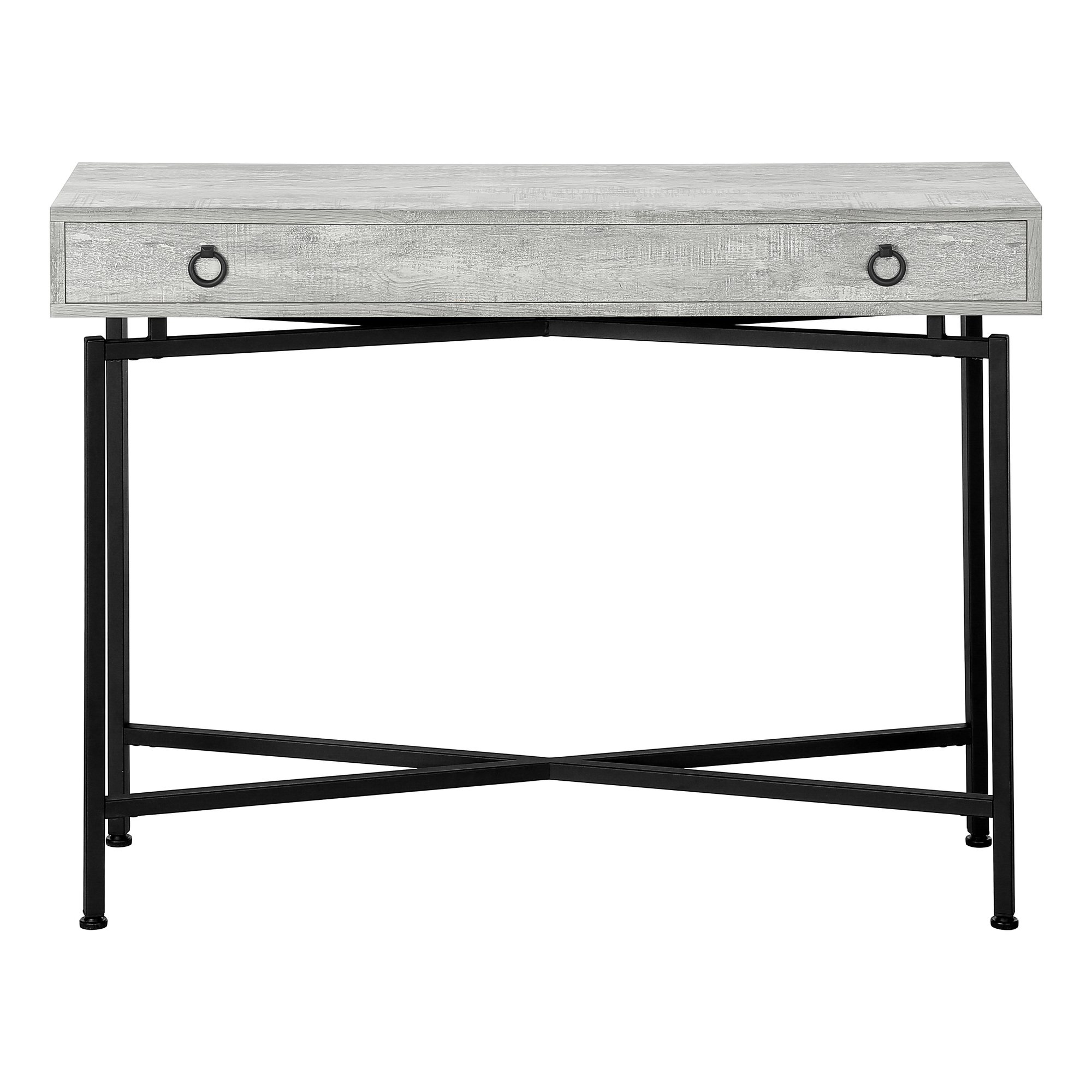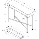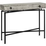 Add a touch of contemporary styling to your home with this grey reclaimed wood-look console table. Ideal for entryways, hallways or anywhere you would like to showcase your favorite accent pieces, this table will blend seamlessly with any decor. Featuring a sturdy black metal base and a chic brown reclaimed wood-look top, with a large storage drawer, this fashion-forward piece will provide years of lasting enjoyment.