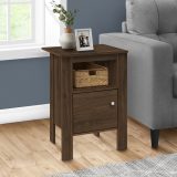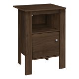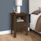 Bring an industrial and contemporary design together with this dark walnut night stand that can also be placed beside the couch as an end table or accent table. In a compact format, it has ample surface space for a few decorations, books or a laptop/tablet thanks to an open shelf and closed cabinet with a beautiful square silver knob. Make your small home, apartment or condo feel nice and homey and draw some attention to your stylish dark walnut finish side table.