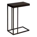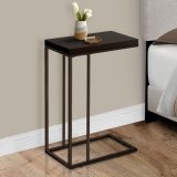 For a brilliant home upgrade, this dark brown, espresso wood look C shape side table does the trick. Supported by an elegant bronze metal base, the end table is made for anything from snacks and drinks to your laptop, tablet and even decorative accents that complement the rest of your decor. Bringing a modern touch to your small home, condo or apartment, this C table slides nicely under the couch or bed. Study session? Favorite movie? Quiet reading time? This side table handles all of the above.