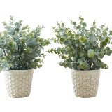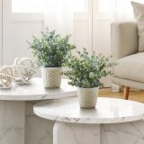Turn any indoor space into a beautiful oasis with this set of 2 artificial plants up to 13″ tall that are nestled in eye-catching, 5″ textured cement white pots. With a realistic look and feel, these faux Eucalyptus Grass potted plants offer a hassle-free way to liven up any space. Crafted from high-quality materials, these plants are durable with no maintenance and no water required, making this an environmentally friendly alternative and adding a touch of nature to low-light rooms. The variegated fake green leaves can be adjusted and fanned out for a full, natural look. This indoor only, artificial plant set is backed by a 5 year limited warranty against manufacturer defects for your satisfaction and enjoyment. This table plant set makes the perfect no-fuss decorative accent for the home or office, bringing some life and greenery into your space.