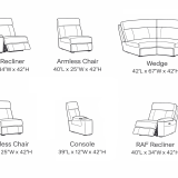 - Includes two recliners, two armless chairs, one wedge, and one console