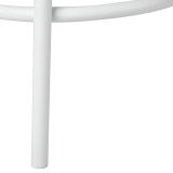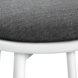 These bar height stools have sturdy white metal construction with a curved low back and bottom foot rest for extra comfort.
