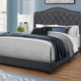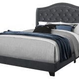 Give your bedroom a master appearance with this luxurious queen size bed frame and wing back headboard, upholstered in a rich dark grey velvet-look fabric. The gently curved classic style of this floor length headboard, outlined with a chrome nailhead trim and cushioned diamond tufting, gives the bed a statement making flair. The clean lines of the upholstered sides and front frame brings a contemporary touch. The black plastic block-style legs slightly angled at the front, adds stability to the whole bed frame. The box spring and mattress is not included and must be purchased separately. All parts and assembly instructions are included.
