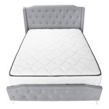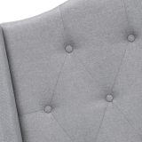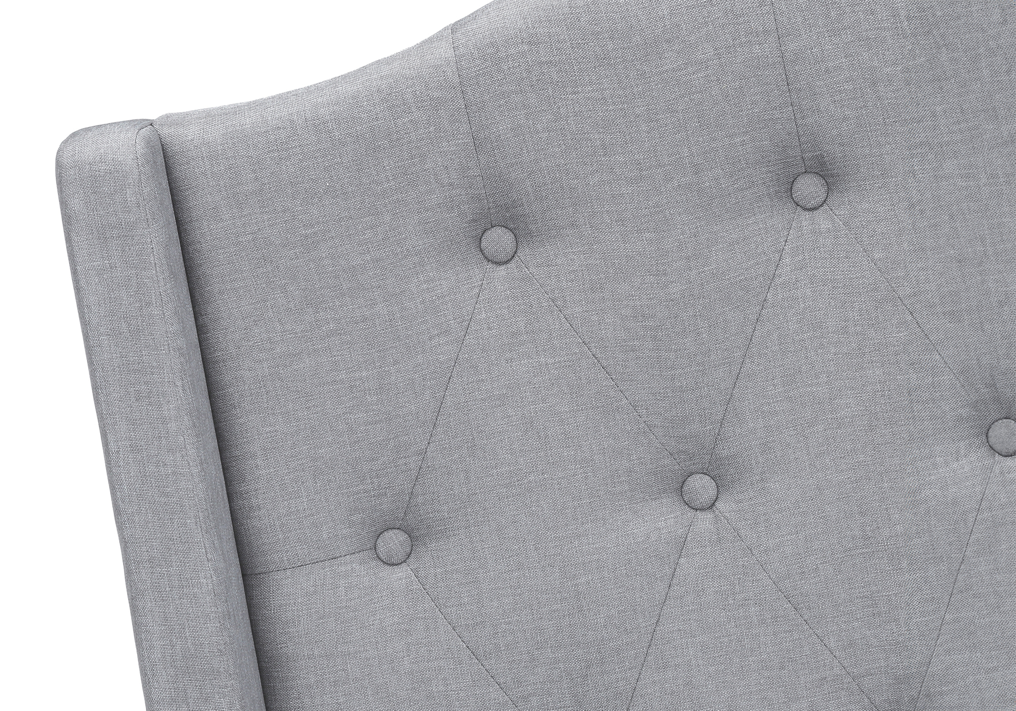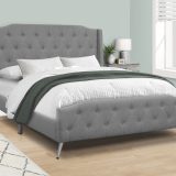 Bring a luxurious feel to your bedroom with the updated classic styling of this queen-size, upholstered bedframe with a wingback headboard. Covered in an elegant grey linen-look fabric over foam cushioning on all sides, this bed is embellished with button tufting on both the gently arched headboard and footboard for an opulent appeal. The support legs are covered with the same grey linen inspired material for a polished finish, and the slanted chrome metal feet at the footboard adds that surprise modern touch. A standard queen size box spring and mattress is required but not included and must be purchased separately. All parts and assembly instructions are included inside the zippered compartment on the back of the headboard.