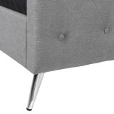 Support feet are covered in the same linen look fabric for a clean refined look, with slanted chrome metal legs attached to the footboard for a modern luxe appeal in a bedroom