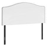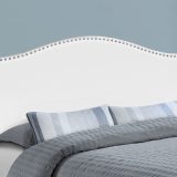 Combining modern materials and a classic silhouette, this upholstered headboard panel in a white leather-look fabric brings timeless style to any bedroom. Silver-finish nailheads create an eye-catching frame around the gently arched top and straight sides. Upholstered with extra padding and smooth-to-the-touch fabric, this headboard panel provides an ultra-soft feel for a comfortable night’s sleep. Streamlined and compact, this headboard adjusts easily to your desired height with any new or existing bed frame and is ideal for any size bedroom.