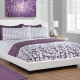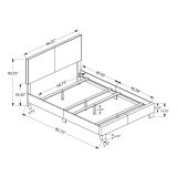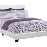 This contemporary upholstered bed frame finished in a white leather look material, is set to decorate your bedroom with elegance. Including bold wooden slats for a durable construction, sturdy side rails and block style plastic legs, stability is not a problem. This Queen size bed frame fits nicely in tighter spaces of smaller homes, apartments or condos and will surely be the center of attention as soon as you step into your bedroom. Queen size mattress and box spring are required and not included (2 inch low profile recommended). All parts and hardware for assembly are conveniently located inside the headboard.