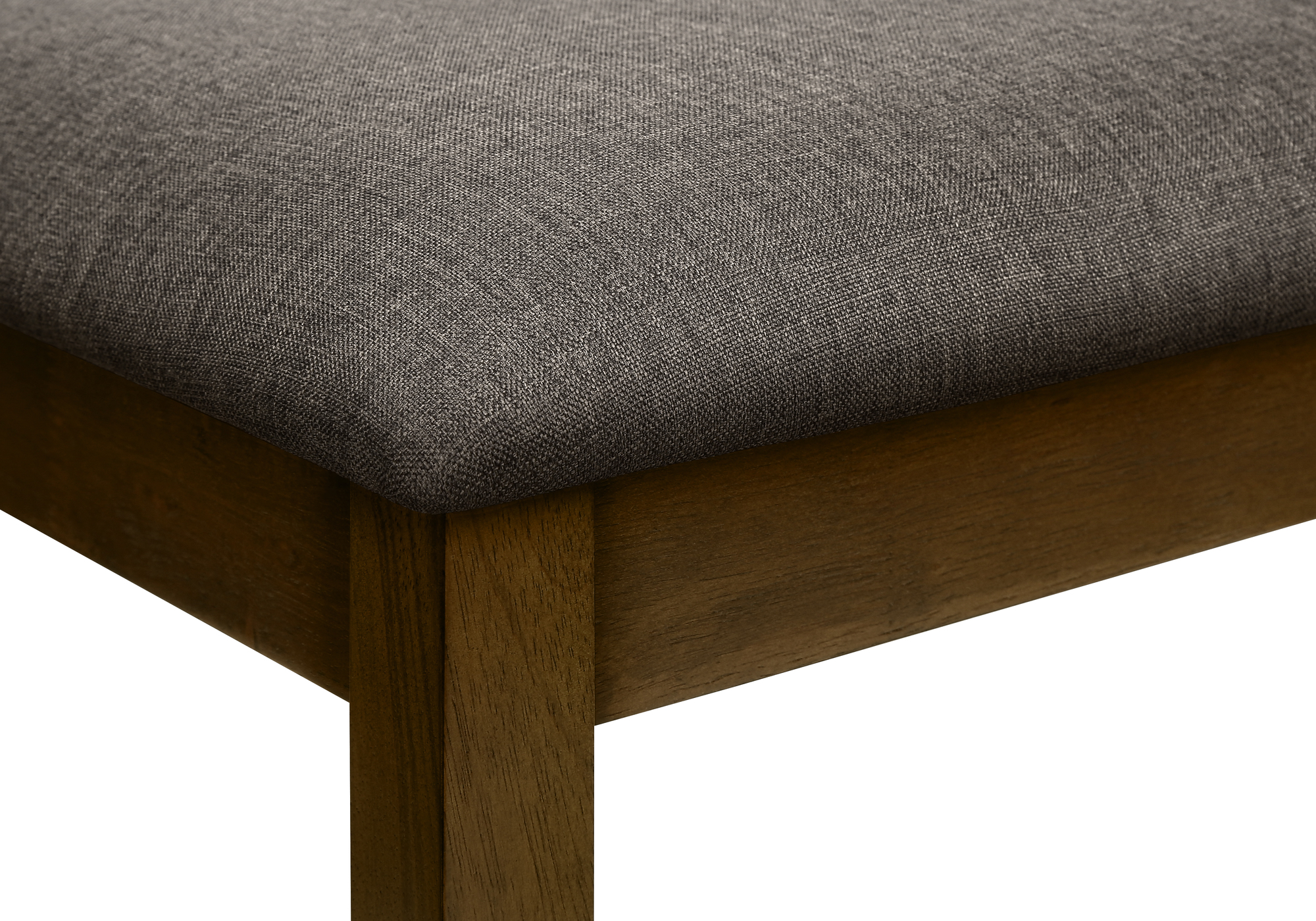 This bench is the perfect combination of fashionable style and practical design. With a walnut brown solid wood frame and sturdy brown fabric upholstery, this 44″ rectangular bench is an attractive and comfortable seating addition to any dining room, kitchen, living room, hallway, or entryway. The transitional design blends with any decor style to make a lasting impression in your home. Easy to assemble and durably designed, this upholstered bench will provide years of use and enjoyment. Backed by a 2 year limited warranty against manufacturer’s defects so you can purchase with confidence knowing you are getting a quality made piece. Transform your space with this stylish and practical bench today!