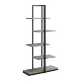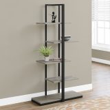 Let this etagere accent bookshelf have its moment to shine in your living room, entrance, bedroom or office. Ideal for the display of any decorative items of your choosing or your household items, this sturdy unit boasts 5 taupe display shelves finished on all sides in a unique asymmetrical zig-zag design. Supported by a robust black metal base, this bookcase will be a welcoming addition in your home. Pair it easy with many matching items.
