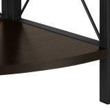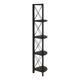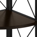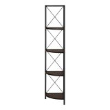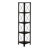 Perfect for photo frames, plants, other decorative items and even kitchen accessories, this transitional-style corner bookcase will upgrade your decor. Including 4 solid dark brown espresso display shelves, this corner display unit features a three-leg black metal frame and a X-Design to add modern flare wherever you choose to place it. This corner etagere bookcase is sure to impress. Assembly is required.