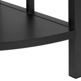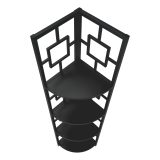 This corner shelf features a three-leg black metal frame, allowing it to sit tight against the wall