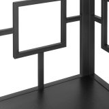 Perfect for photo frames, plants, other decorative items and even kitchen accessories, this transitional-style corner bookcase will upgrade your decor. Including 4 solid black display shelves, this corner display unit features a three-leg black metal frame and a square transitional design that will add modern flair wherever you choose to place it. This corner etagere bookcase is sure to impress. Assembly is required.