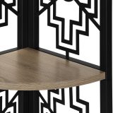 Let this stylish corner cabinet conquer the clutter in your small home, apartment or condo by providing 4 solid taupe display shelves that are perfect for photo frames, plants, other decorative items and even kitchen accessories. Perfect for decluttering, this black metal corner cabinet features a transitional design that will elevate the look of your living room, bedroom, kitchen or office. This corner storage accent piece will add a touch of elegance to any room in your home.