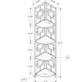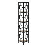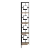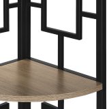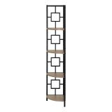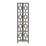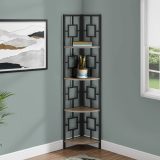 Perfect for photo frames, plants, other decorative items and even kitchen accessories, this transitional-style corner bookcase will upgrade your decor. Including 4 solid dark taupe wood look display shelves, this corner display unit features a three-leg black metal frame and a square transitional design that will add modern flair wherever you choose to place it. This corner etagere bookcase is sure to impress. Assembly is required.