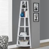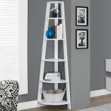 Set up this etagere bookcase easily and let it do its thing! Look how nice the bookcase fits in a corner of your living room, office or bedroom, allowing you to showcase books and all types of decor easily. Make use of a spot that is often tough to work with: the corner. Maximize storage and display with a modern piece that will be sure to help you utilize all the space available to you thanks to 5 fixed tray style shelves. Three sturdy beam legs ensure structural integrity to this corner ladder shelf in white. Anti-tipping hardware is included for further stability.