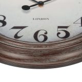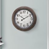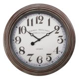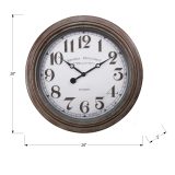 Upgrade your home decor with this charming, vintage style, 20″ round wall clock that seamlessly blends transitional design with modern functionality. This decorative clock features a durable, plastic frame in a rubbed antique brown finish with a glass surface. The large, easy to read printed numerical markings with classic, black metal hands against a simple vintage print, makes it a functional and stylish addition to any space. With modern quartz movement ensuring accurate timekeeping, this clock is not only a beautiful decorative accent but also a reliable timepiece. The non-ticking mechanism provides a peaceful atmosphere without any distracting noise. No assembly is required, simply insert 1 AA battery (not included), hang it up and enjoy! For indoor use only, this stylish analog clock is backed by a 2-year limited warranty against manufacturer defects, so you can trust in its quality and craftsmanship.
