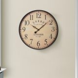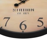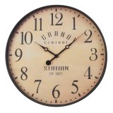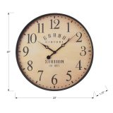 Stay on-trend with this simple, transitional style 20″ round wall clock with a durable plastic frame in antique brown, encasing a clear glass surface. The easy to read numerical display of this analog clock, against a grand central station printed background evokes the nostalgia of train travel. The non-ticking quartz movement provides a quiet and peaceful environment while ensuring accurate timekeeping. This clock requires just 1 AA battery (battery not included) for operation and with a 2 year limited warranty against any defects, you can trust in the quality and reliability of this clock. With no assembly required, just hang it up and enjoy! Suitable for indoor use only, this decorative clock is a must-have for all home decor styles.