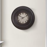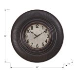 Add a touch of vintage charm to your home decor with this stunning 20″ round wall clock in antique brown. This decorative clock features easy to read, printed numerical markings under a glass surface and a non-ticking quartz movement for accurate timekeeping. With a durable and stylish beaded plastic frame and no assembly required, just pop in 1 AA battery (not included) and enjoy the quiet elegance of this analog clock. For indoor use only and backed by a 2 year limited warranty, this clock is a must-have for any trendy home. Make a statement with this transitional accent piece that seamlessly combines functionality with style.