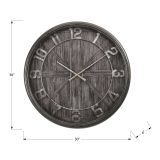 Stay ahead of the trend with this stylish 30″ round wall clock in a chic brown finish. This large oversized clock features a durable glass surface and plastic frame with a wood-look printed face, for a touch of rustic sophistication in transitional home decors. The easy to read analog display comes with reliable quartz movement for accurate timekeeping. Say goodbye to annoying ticking sounds with this non-ticking clock that is perfect for quiet spaces. Plus, with no assembly required and only 1 AA battery needed (not included), this decorative clock becomes a hassle-free addition in your space. For indoor use only, this clock includes a 2 year limited warranty against any defects for your confidence of a quality made accent piece.