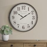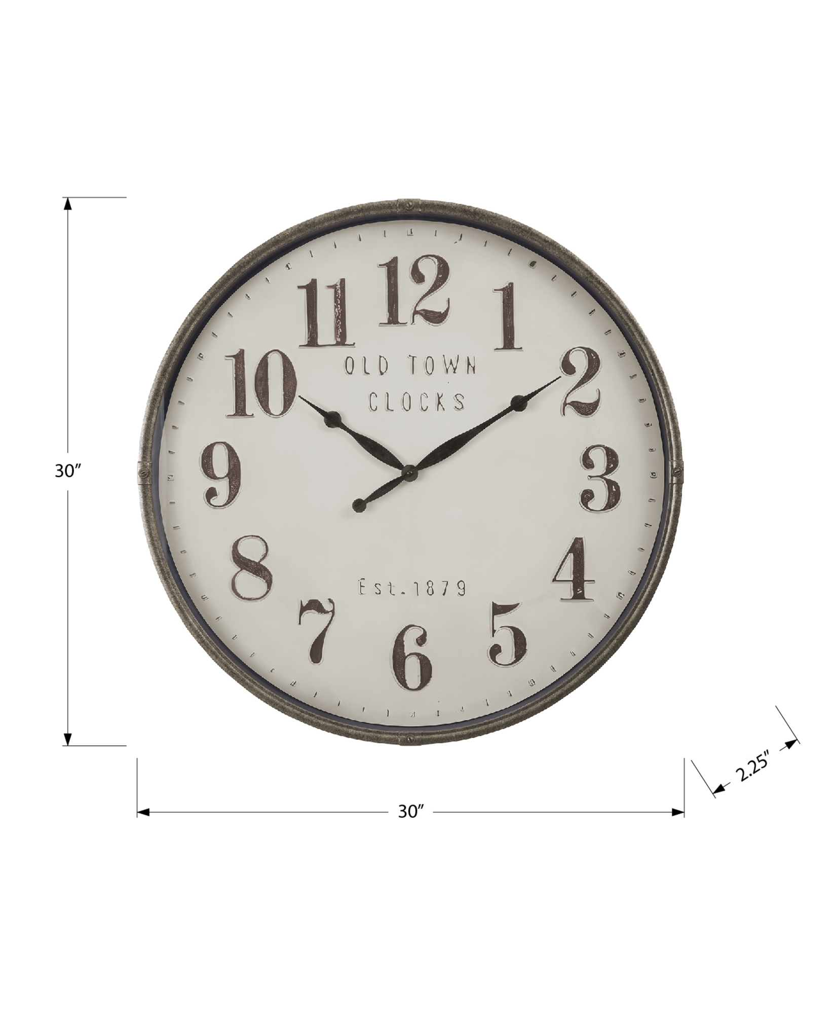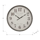 Make a statement with this stunning 30″ round wall clock in a rich brown finish. This large oversized clock is perfect for adding a touch of transitional style to your home decor. The protective glass surface and thick plastic frame make it both a durable and quality timepiece. With its printed, easy to read analog display and quartz movement, this clock will provide accurate timekeeping for years to come. This decorative clock requires just 1 AA battery (not included) and comes with a 2 year limited warranty for your peace of mind. The non ticking design ensures a quiet environment, making it ideal for indoor use only. No assembly is required, simply hang it up and enjoy how it instantly brightens up that empty wall space!