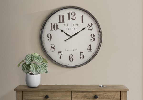 Easy to read analog clock face with large oversized numbers, with quartz movement for accurate timekeeping.