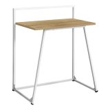 Elevate your workspace with this trendy computer desk! Perfect for a home office or student’s study area, this 30″l desk features a sleek wood-look natural laminate easy to clean top, durably designed for everyday use. The white metal base adds a modern touch to the fashionable style of this desk, making it a functional workspace for writing, studying, or working on your laptop. With a 5 year limited warranty against any defects and easy to assemble with full illustrated instructions included, this space saving desk is sure to be your go-to choice for a contemporary and stylish work area. Finished on all sides, this computer desk is the perfect addition to any chic and modern space.