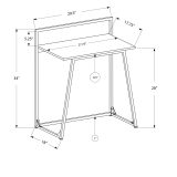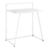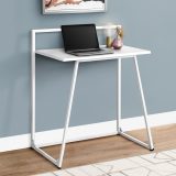 Elevate your workspace with this trendy computer desk! Perfect for a home office or student’s study area, this 30″l desk features a sleek white laminate easy to clean top, durably designed for everyday use. The white metal base adds a modern touch to the fashionable style of this desk, making it a functional workspace for writing, studying, or working on your laptop. With a 5 year limited warranty against any defects and easy to assemble with full illustrated instructions included, this space saving desk is sure to be your go-to choice for a contemporary and stylish work area. Finished on all sides, this computer desk is the perfect addition to any chic and modern space.