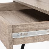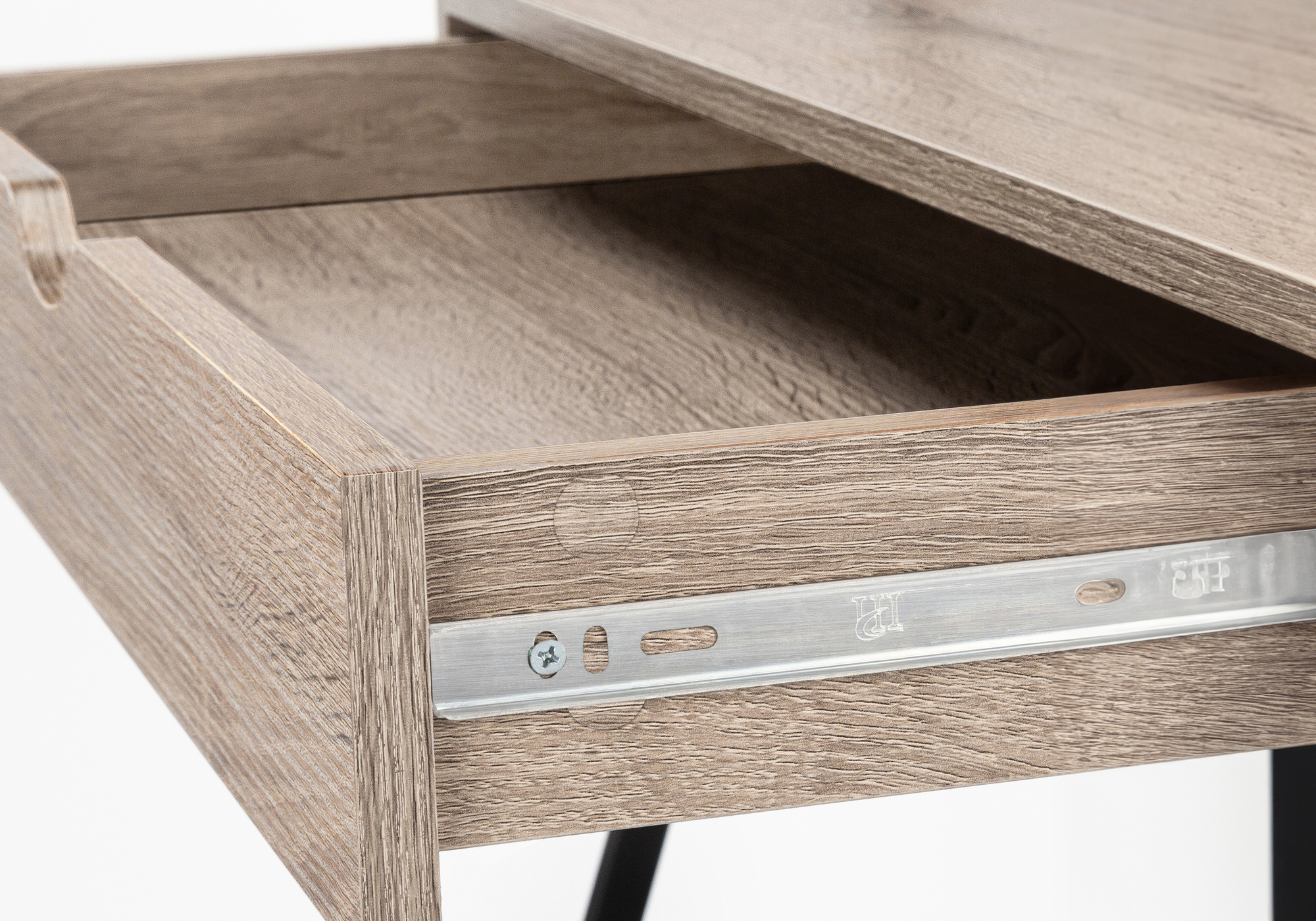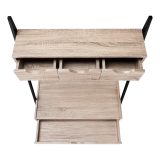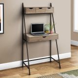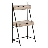 When you desperately need to carve out your own workstation but space is a challenge, then look no further than this space-saving computer desk that includes plenty of storage! Finished in a warm, dark taupe wood-look laminate with a sturdy black metal frame, this compact workstation has enough surface area to place a laptop and a small lamp, with a long drawer on metal glides to tuck away easy to reach office essentials. Look up and you have another 3 storage drawers on top with a shelf to place a few books, decorative accessories, and other inspirational objects. This desk can sit in a hallway, your livingroom, bedroom, or any nook where you can have your own creative workspace without taking up too much room. Assembly is required.