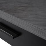 Open and closed storage options include 1 storage drawer that is extra wide and equipped with 2 handles in a black finish and metal drawer glides, and 1 bottom shelf with an L-shape