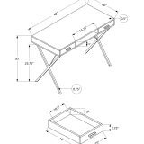 This widely versatile industrial style desk finished in a black marble-look laminate is equally functional as a computer desk, writing table or study center. Sized for small homes, apartments or condos, space saving is a breeze thanks to this piece that is supported by a sturdy black metal X-shaped trestle legs to ensure stability and a comfortable work environment. This office desk is equipped with two convenient and easy-open storage drawers for all you need to store away while not in use. With lots of space to push the chair in, the desk is compact, while the desktop has the perfect amount of surface space for a laptop/tablet, lamp, notebook and some important supplies to get the job done.