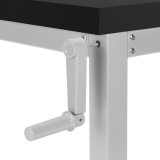 Keeping yourself productive and healthy doesn’t have to be challenging, just add this height adjustable desk to your home office! Featuring a unique design in its category and a smooth black laminate finish, this standing computer desk is both contemporary in design and functional. The 2 inch squared silver metal legs offer a solid base and lots of space for your office chair. The modern 2 inch thick desktop adds style while being the perfect place for your laptop/tablet, a lamp, notebooks or any supplies you need to get the job done!