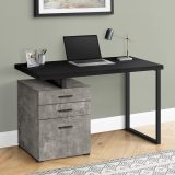 Introducing the ultimate home office essential – this 48″L computer desk with a black and concrete laminate finish and reversible configuration. This sleek and fashionable style desk is durably designed with a sturdy U-shaped black metal leg, a spacious and easy to clean top and finished on all sides, perfect for any modern and functional workspace. With the flexibility of a left or right setup to fit your needs, this space saving desk is ideal whether you use it for study, writing, or working on your laptop. Stay organized with closed storage drawers and a convenient file drawer with hanging bars for all your essentials. This contemporary desk is easy to assemble with illustrated instructions included and comes with a 5 year limited warranty for peace of mind.