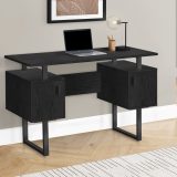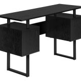 Take command of your office space with this mid-size modern computer desk that includes generous storage cabinets for your office essentials. Finished in a warm black oak-look on all sides, including inside the closed cabinets, makes it easy to place this desk anywhere in a room. Each cabinet is fitted with an adjustable shelf, giving you plenty of space to store your office supplies and important documents within easy reach but out of sight. Black u-shaped metal legs provide solid support for this updated version of a mid-century style desk. Full assembly instructions are included.