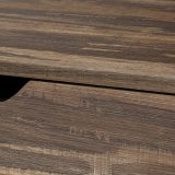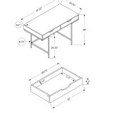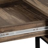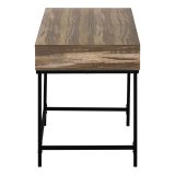 A stylish study in contrasts, this streamlined computer desk will add style to any room. Finished in a brown reclaimed wood-look laminate, the desktop has a substantial appearance thanks to an ample work surface and built-in drawers. The 2 storage drawers are wide and deep, offering room for supplies like writing materials and even letter- and legal-size papers. Supporting the top is a sturdy base in a contrasting black finish with slender metal legs that are recessed for a striking look. With its clean design and compact size, this modern laptop desk is ideal for smaller home offices and is attractive enough to also serve as an accent table.