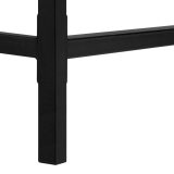 Metal base in a black finish provides stability and includes slender metal legs that are recessed under the rectangular desktop