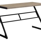 This sleek compact computer desk in a simple contemporary design adds style with functionality to your workspace. The smooth and spacious dark taupe faux wood-grain laminated surface made from quality MDF material provides plenty of room for a laptop, lamp, and other office essentials. The sleek and sturdy Z shaped black metal base gives that modern look. This desk easily compliments a student’s room or any place you have carved out as your office and creative space. Quick to assemble, you’ll have your work area set up in no time at all!